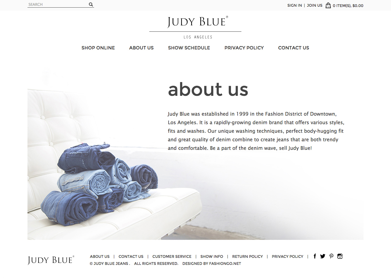 Judy Blue was established in 1999 in the Fashion District of Downtown Los Angeles. It is a rapidly-growing denim brand that creates trendy and comfortable jeans.
